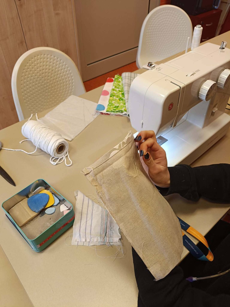 W tym tygodniu w ramach projektu SzyjeMy na zajęciach w miłej atmosferze uszyliśmy woreczki na telefon .